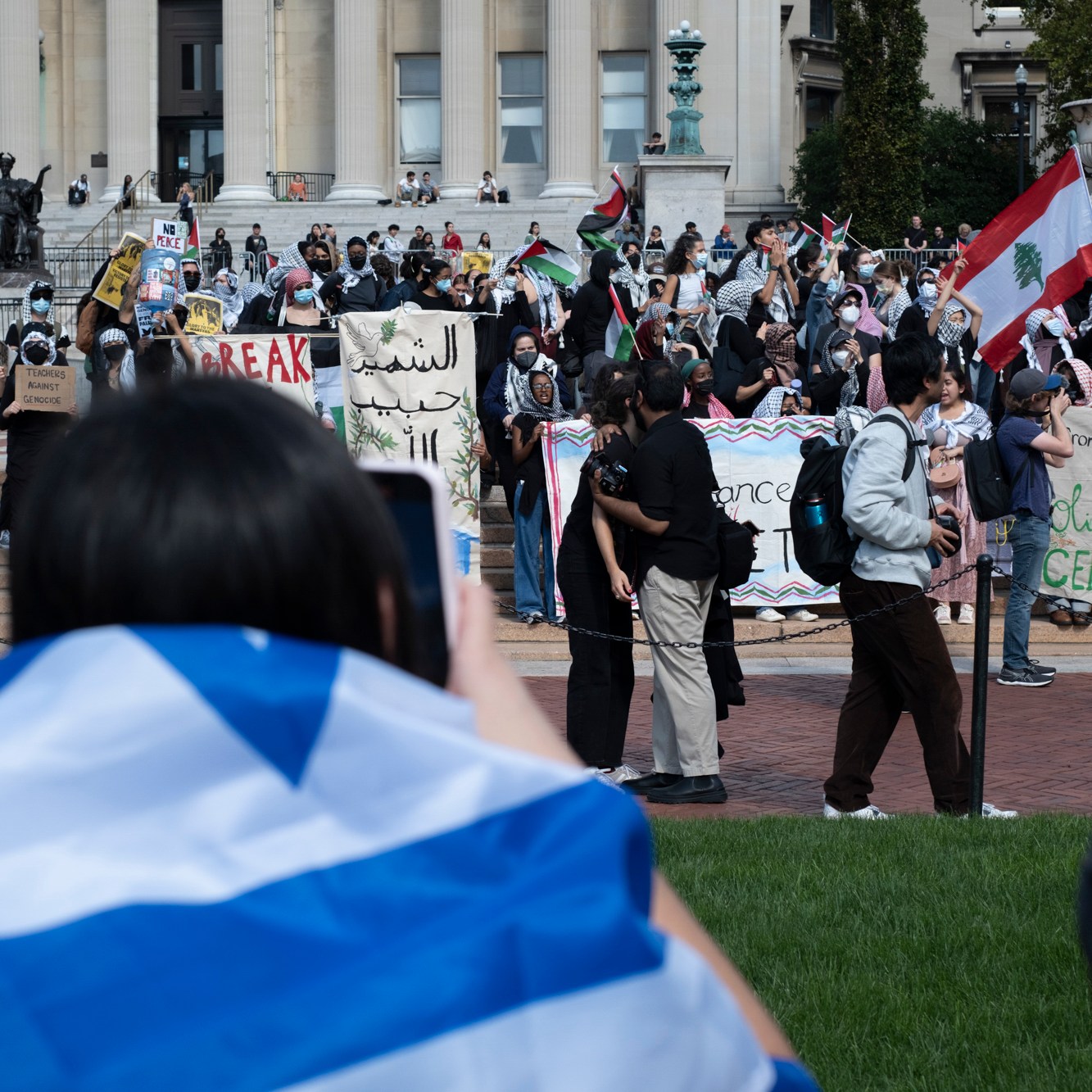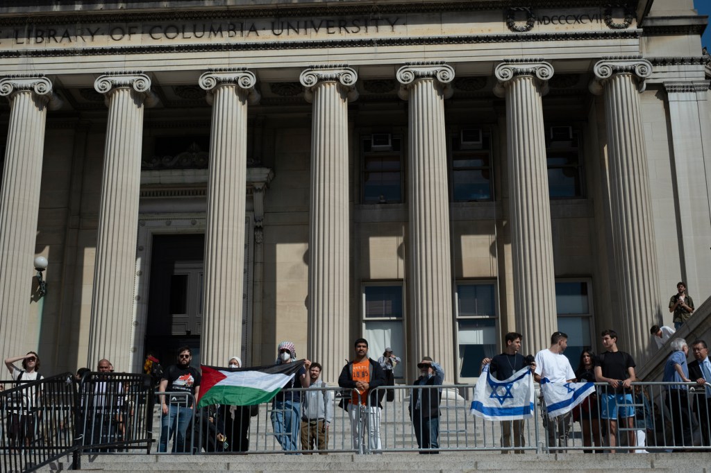 Students and faculty of Columbia University take part in demonstrations in supporting Israel and Palestine to mark one year since October 7. The university has been at the forefront of protests and counterprotests since April when hundreds of student’s pitched tents to establish an encampment calling for the university’s divestment from companies profiting from Israel’s military assault in Gaza. The encampment sparked protests in educational institutions worldwide.