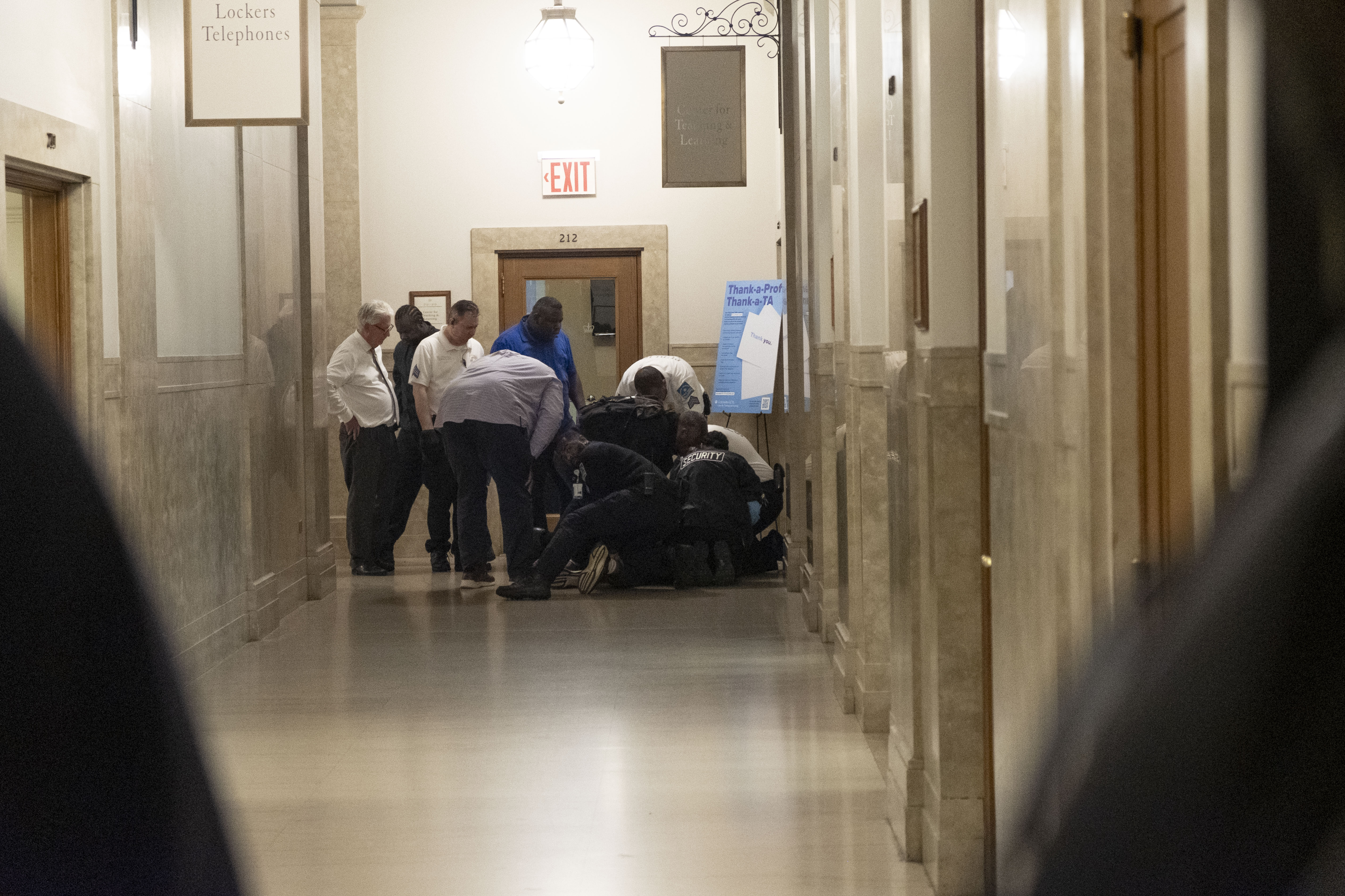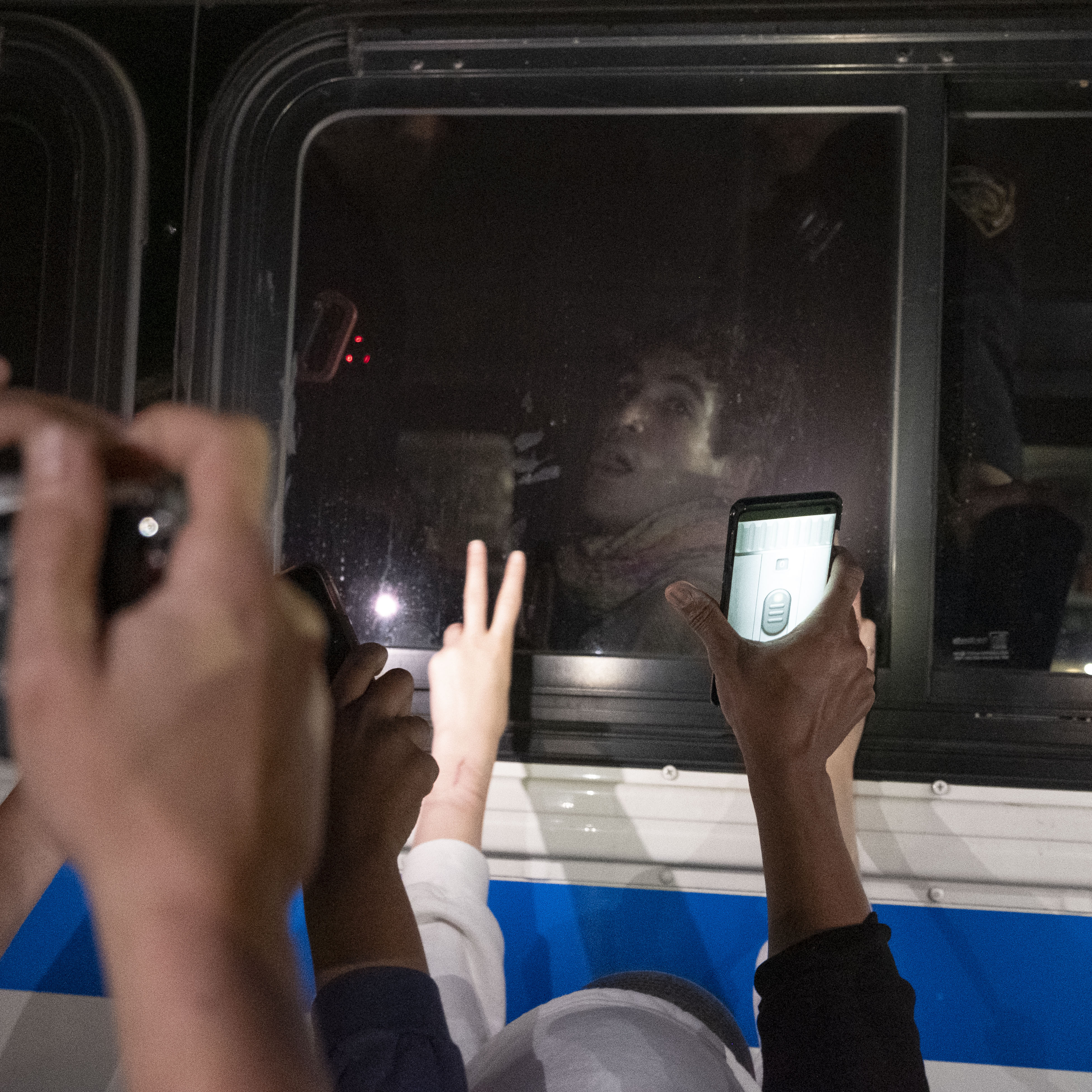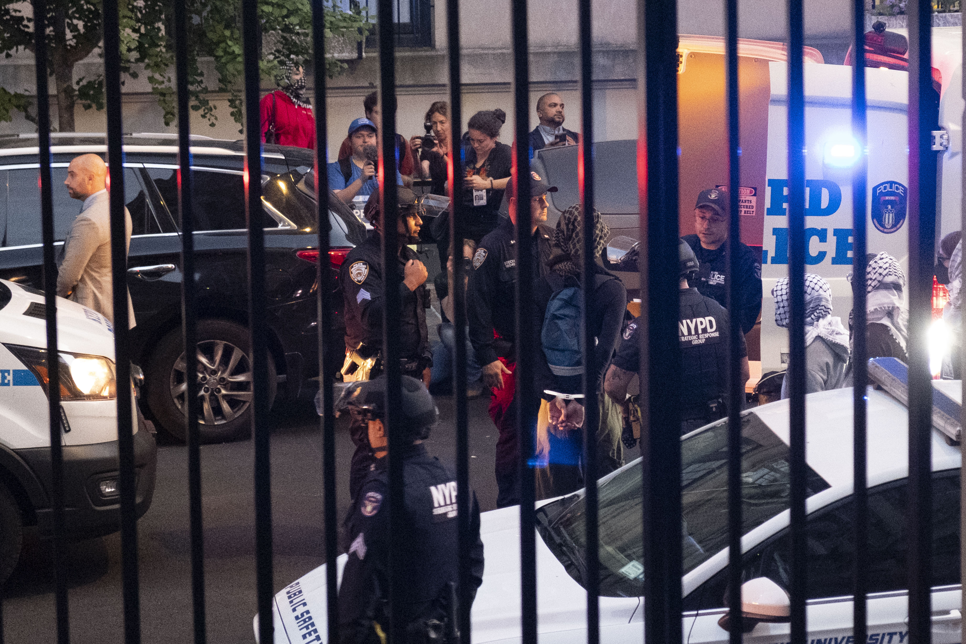 At around 7:15 p.m., NYPD officers – including the Strategic Response Group – in riot gear led the protestors outside Butler and into NYPD vans and buses through the exit on 114th street between Broadway and Amsterdam. Two were taken off campus in stretchers by the University’s Emergency Medical Service team.
